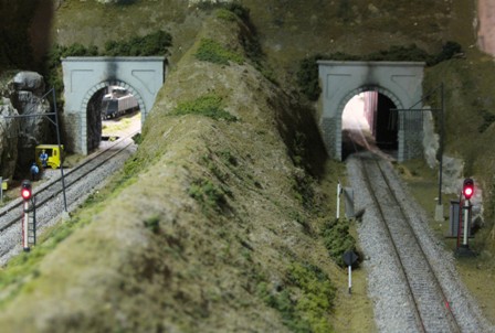 As most of you know, there are three locations on Dividing Creek that require extra care–South Portal, Alfrecha and, unremarked until recently, a spot just north of New Haven Jct. These spots mark where one power system ends and another begins. Dynatrol being what it is, if one power district suffers a short circuit and a locomotive goes across the gap so that half the engine is getting power and the other half is not, the usual result is some smoke and sometimes the shell may experience some meltdown.